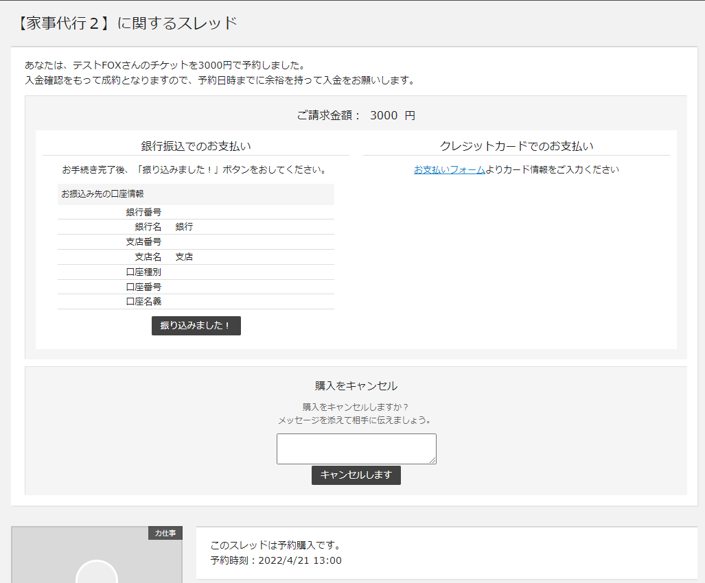 購入したチケット・受注されたリクエストの支払い履歴を確認できます。 |